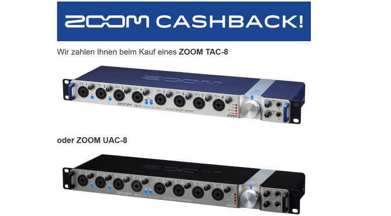 Das ist doch mal eine ganz nette Aktion von Zoom bzw. dem deutschen Vertrieb der Japaner. Wer im Zeitraum zwischen 10. November bis 24. Dezember eines der beiden Audiointerfaces Zoom TAC-8 oder Zoom UAC-8 bei einem Zoom-Händler kauft, bekommt 100 Euro zurück. Aber eine Bedingung muss erfüllt sein: