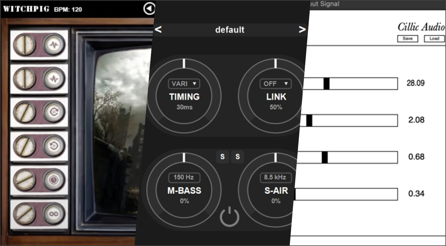 Das Interface von Apocalypsis ist typisch Witch Pig: eigenwillig, charmant und ein bisschen retrofuturistisch. Anstelle klassischer Regler blickt man auf ein flackerndes Fernsehgerät, in dem dystopische Szenen zu sehen sind. Die Bedienelemente sehen aus wie Schrauben und steuern Pitch, Delay, Feedback, Verzerrung und den Gesamtpegel. Dieses Design wirkt zunächst verspielt, unterstreicht aber den experimentellen Charakter des Plugins perfekt. Und das natürlich als kostenlose Freeware!