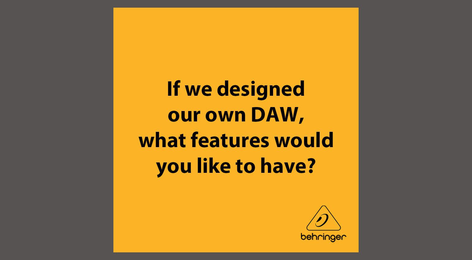 Vor ein paar Tagen hat Behringer mal wieder einen interessanten Beitrag auf Facebook gepostet. Nachdem das Unternehmen kürzlich bereits ganz vorsichtig nach dem Interesse an eventuellen Plug-ins gefragt hat, geht es diesmal erneut um Software. Konkret um eine DAW und die Frage nach den Wünschen der potentiellen User. Wir stellen die Frage hier gleich noch mal, neugierig wie wir sind.