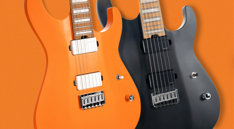 Als Basis dient ein Lindekorpus, entweder in Matt-Schwarz (Black Satin) oder in Orange (Orange Crush Satin). Gerade zweitere ist ja schon ein ziemlicher Blickfang, man ist ein wenig an das neue iPhone 17 Pro erinnert. Das Highlight der Cort KX600 Infinite ist aber die Neck-Through-Body-Konstruktion. Der durchgehende 5-streifige Hals aus geröstetem Ahorn und Walnuss soll für ein absolut überragendes Resonanzverhalten sorgen.