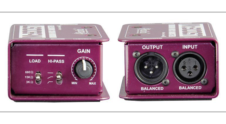 Die kleine Box wurde McBoost genannt, dabei macht sie noch mehr als nur das Signal zu verstärken. Im Inneren arbeitet ein Class-A Dual FET Schaltkreis, der das Signal neutral um 25 dB vor dem Preamp anheben soll. Die für manche Mikro nötige 48 Volt Phantomspannung wird nicht durchgeschleift! (Danke @ Kommentatoren). Neben symmetrischen XLR Ein- und Ausgängen verbaut Radial noch einen Gain-Regler und zwei kleine Hebelchen mit je drei Stufen für Load und Highpass.