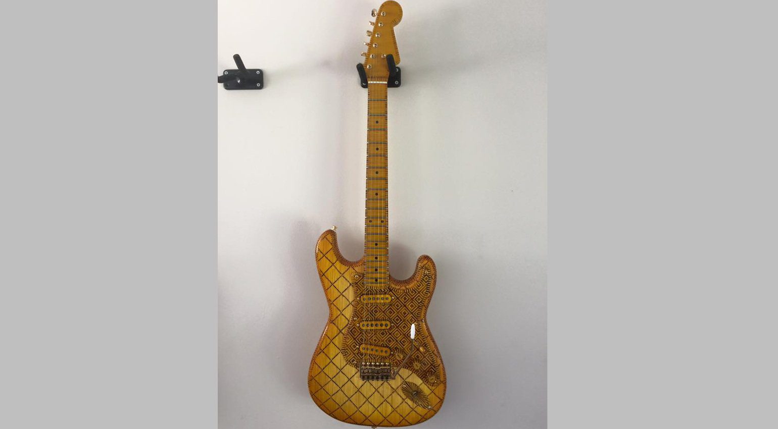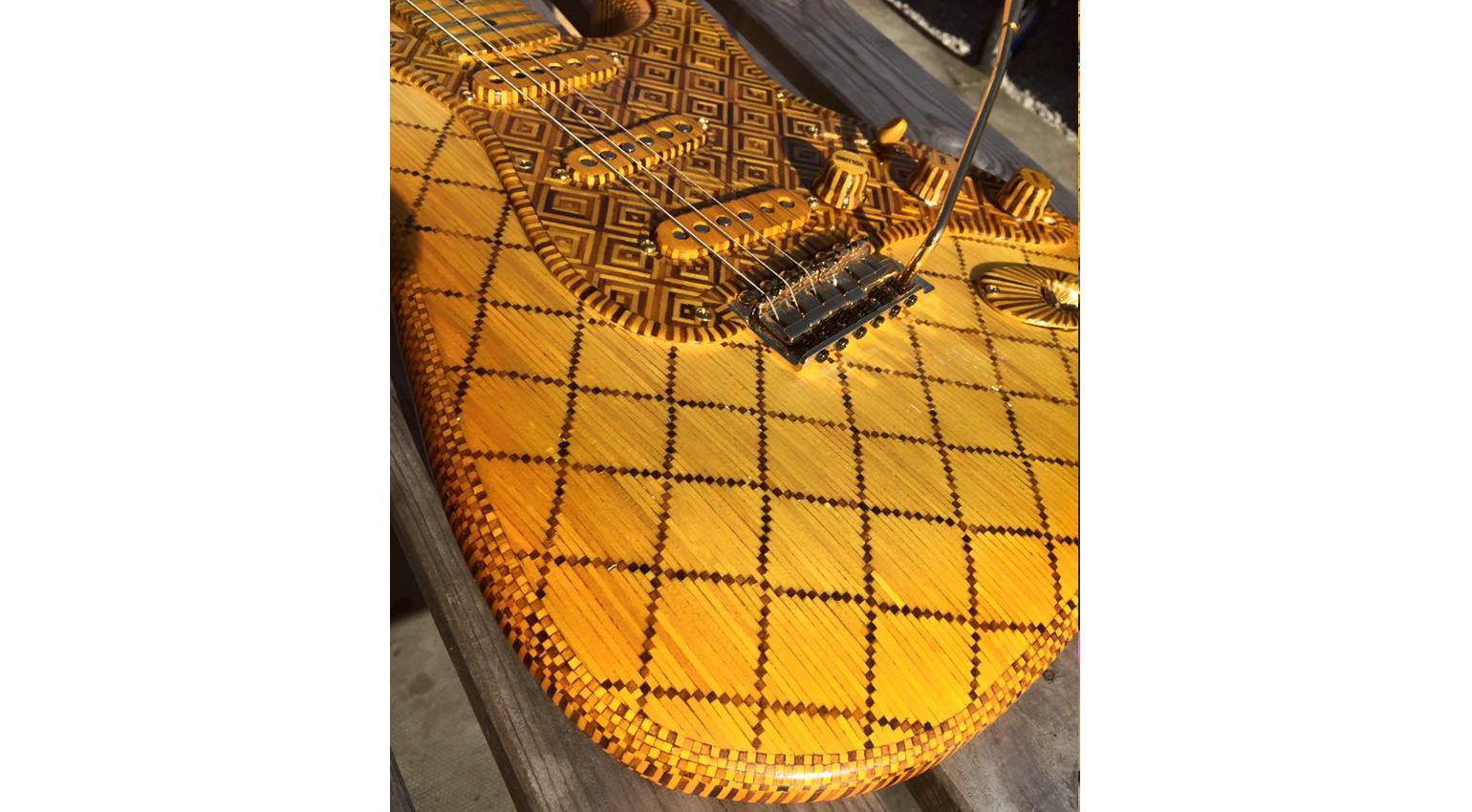 Das ist doch mal etwas Anderes: Eine Gitarre aus Streichhölzern. Da eine Gitarre nicht wirklich klein ist, braucht man eben ein paar mehr. Ungefähr 40000 werden vom Erbauer geschätzt (er hat irgendwann aufgehört zu zählen).Vor gut 18 Jahren hat er mit den ersten Klebearbeiten begonnen, die reelle Arbeitszeit betrug aber „nur“ 2,5 Jahre. Verdammt beachtlich, denn nicht nur der Body ist aus Streichhölzern, sonder auch Hals, Griffbrett und auch die Potikappen und das „Binding“.