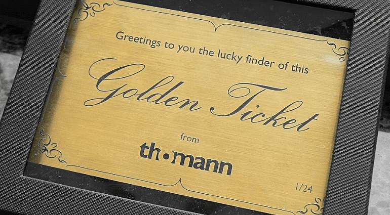 Bei Thomann werden bis zum 24. Dezember 24 Bestellern nach dem Zufallsprinzip je ein goldenes Ticket der Bestellung beigelegt. Unter den 24 Glücklichen werden anschließend drei Gewinner ausgelost. Zu gewinnen gibt es eine komplette Nacht im Januar im kompletten Musikhaus. Alle Infos zu der Aktion gibt es hier.