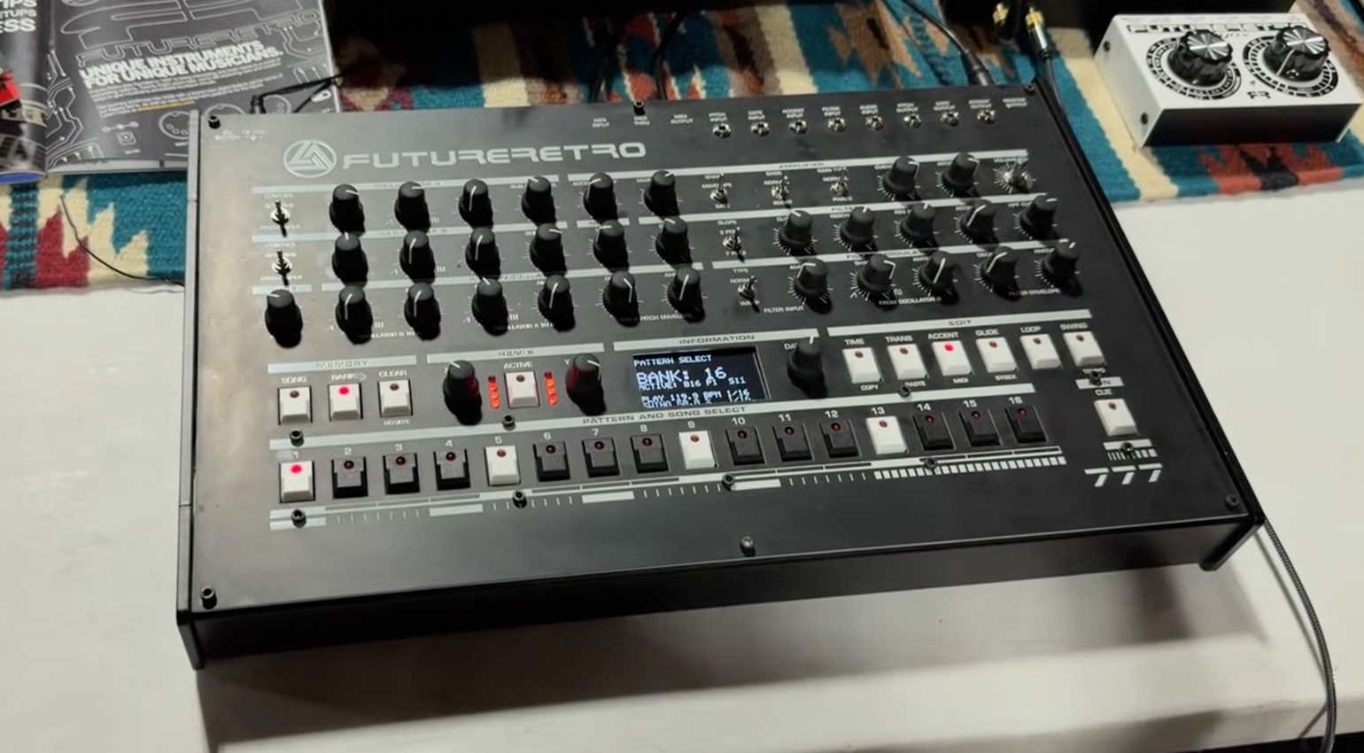 Der neue 777 verfügt über einen überarbeiteten Sequencer, der vom FutureRetro Orb inspiriert ist. Neu hinzugekommen sind verschiedene Performance-Funktionen, eine Zufallsfunktion, Step-Wahrscheinlichkeit, Ratcheting und mehr. Im Gegensatz zum klassischen 777 bietet die Neuauflage ein OLED-Display für eine komfortablere Bedienung.