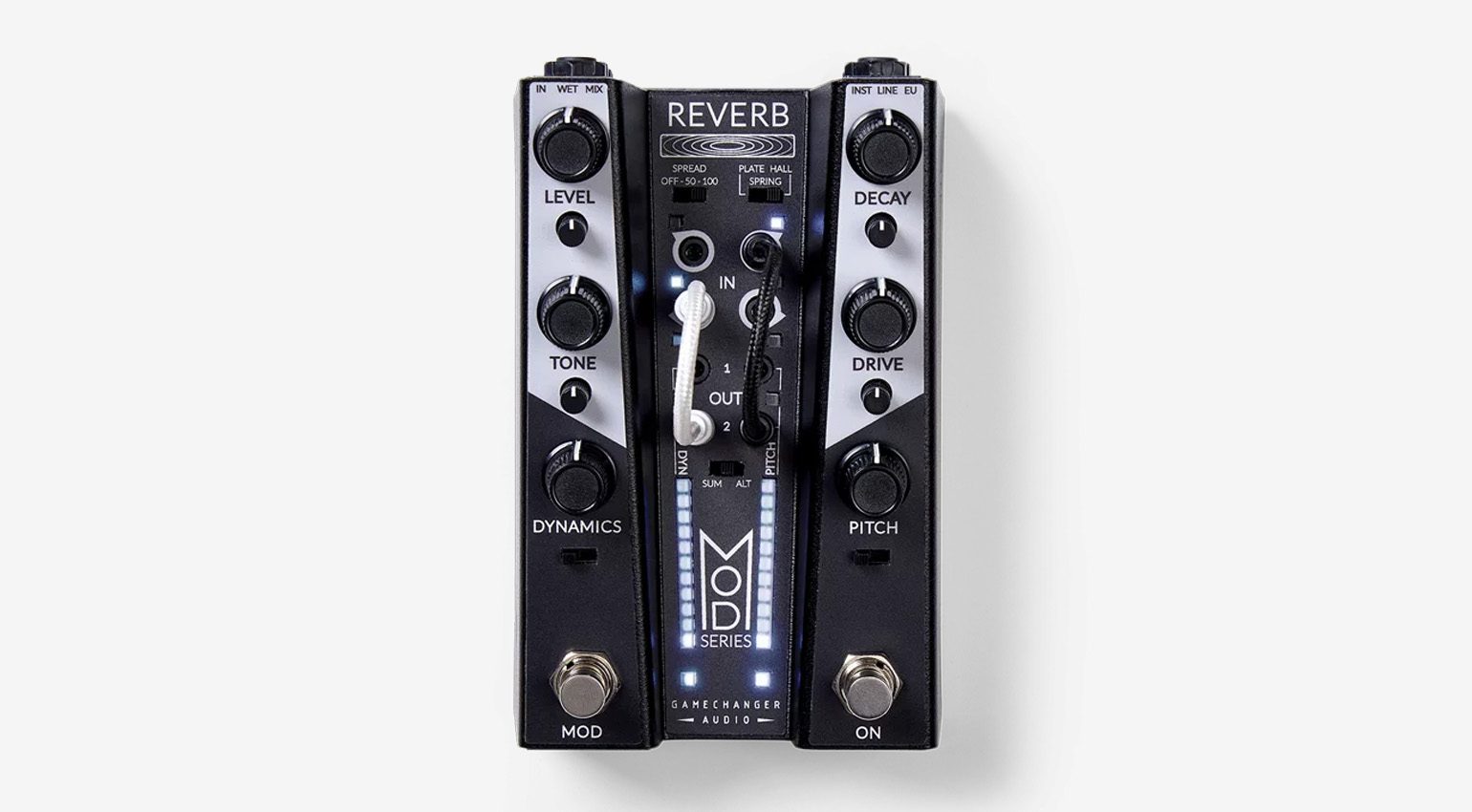 Die Pedale der Gamechanger Audio MOD Series sind in Stereo ausgelegt und vertragen nicht nur Instrumentensignale, sondern auch Line- und sogar Eurorack-Pegel. Die Patch-Buchsen entsprechen dem Eurorack-Standard (± 5 V). Somit bietet sich die MOD Series auch als Ergänzung eines (modularen) Synthesizer-Setups an. Zeitbasierte Parameter wie Delay-Zeit oder Chorus-Rate sind zudem zu einer MIDI-Clock synchronisierbar.