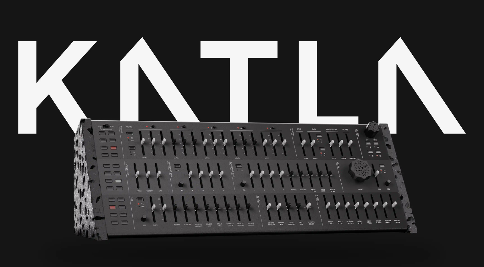 Der eindrucksvolle Katla von Genki Instruments macht schon seit einiger Zeit von sich reden. Der fünfstimmige Synthesizer aus Island ist nicht nur nach einem Vulkan benannt, sondern sieht auch wie einer aus. Die Seitenteile des schroff aufragenden Desktop-Gehäuses sind aus Lavagestein gefertigt, ebenso die Kappen der Drehregler. Und durch die Klangerzeugung und die Modulationsquellen des Synthesizers zieht sich ein roter Faden wie ein Lavastrom: Katla ist ein bisschen unbändig und chaotisch, genau wie das glühende Gestein auf seinem Weg ins Tal.