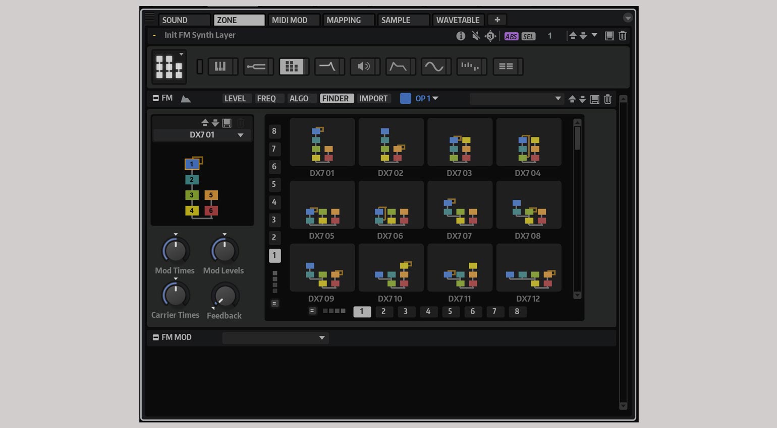 FM Zone wurde in Zusammenarbeit mit Yamaha entwickelt, der Erfinder des DX7 konnte bestimmt einige Expertise in Bezug auf FM-Synthese liefern. Und das wird viele freuen: FM Zone importiert Patches von DX7 und TX81Z!