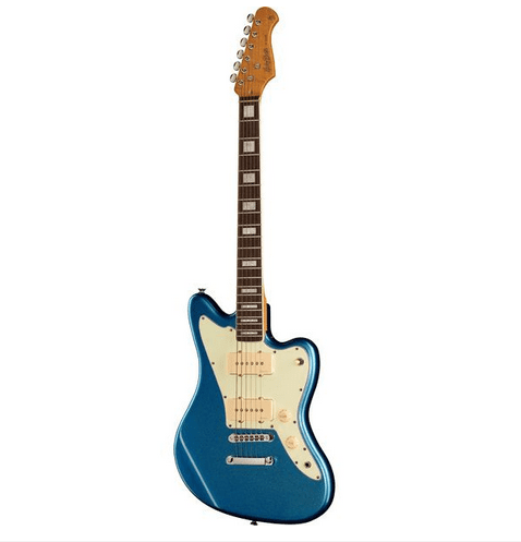 Als Tonabnehmer werden zwei Rosswell JM Alnico-5 Vintage-Style Pickups verbaut, gesteuert wird alles über Master–Volume, Master-Tone und einen 3er PU-Wahlschalter. Der zweite Kanal der Jazzmaster mit Hals-PU-only fehlt.