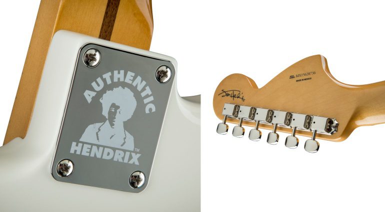 Als Tonabnehmer sind drei American Vintage 65 Singlecoils verbaut, der an der Brücke ist wie damals invertiert, diesmal allerdings nicht dem Umstand nach, weil eine Rechtshändergitarre auf Links gedreht wurde. Die Gitarre gibt es Jimi-typisch in Olympic White und auch in Black.