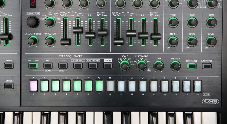Zunächst zum einfachen Teil, der Bedienung. Die ist Roland definitiv gelungen. Wer die kleineren Geräte klanglich mochte, nicht jedoch die vergleichsweise winzigen Knöpfe, der wird hier glücklich. Es gibt viel, was richtig gemacht wurde, wie etwa Sequencer und Arpeggiator, aber auch die Fullsize-Tastatur inklusive Keysplit und freier Wahl der Plug-outs pro Split-Zone. Technisch scheint es Roland anscheinend nicht möglich zu sein, eine andere Stimmenverteilung als in zwei Viererguppen zu bilden, was für die Kombination Bass mit der linken Hand und Fläche auf der rechten gleich mal drei kostbare Stimmen kostet.