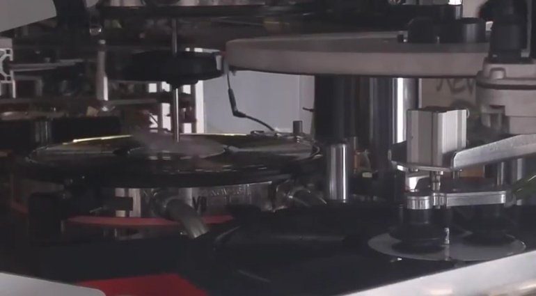 Hier kommt die Cloud ins Spiel. Denn diese vollautomatischen Vinyl-Pressen tauschen darüber Daten aus und synchronisieren sich untereinander. Wenn auf einer dieser Maschinen eine Einstellung gemacht wird, kann man diese speichern und auf einem anderen Gerät wieder abrufen.