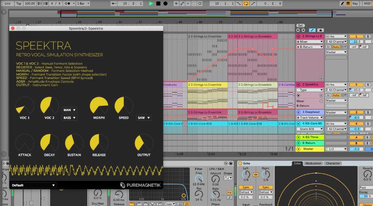 Die Softwareschmiede Puremagnetik veröffentlicht für die umfangreiche Spark und Century Plug-in Sammlung einen weiteren Klangerzeuger namens Speektra. Dieser simuliert durch eine spezielle Synthese-Art Sprache und basiert auf der VOSIM (kurz für Voice Simulation) Methode, entwickelt von Kaegi und Tempelaars in den siebziger Jahren.