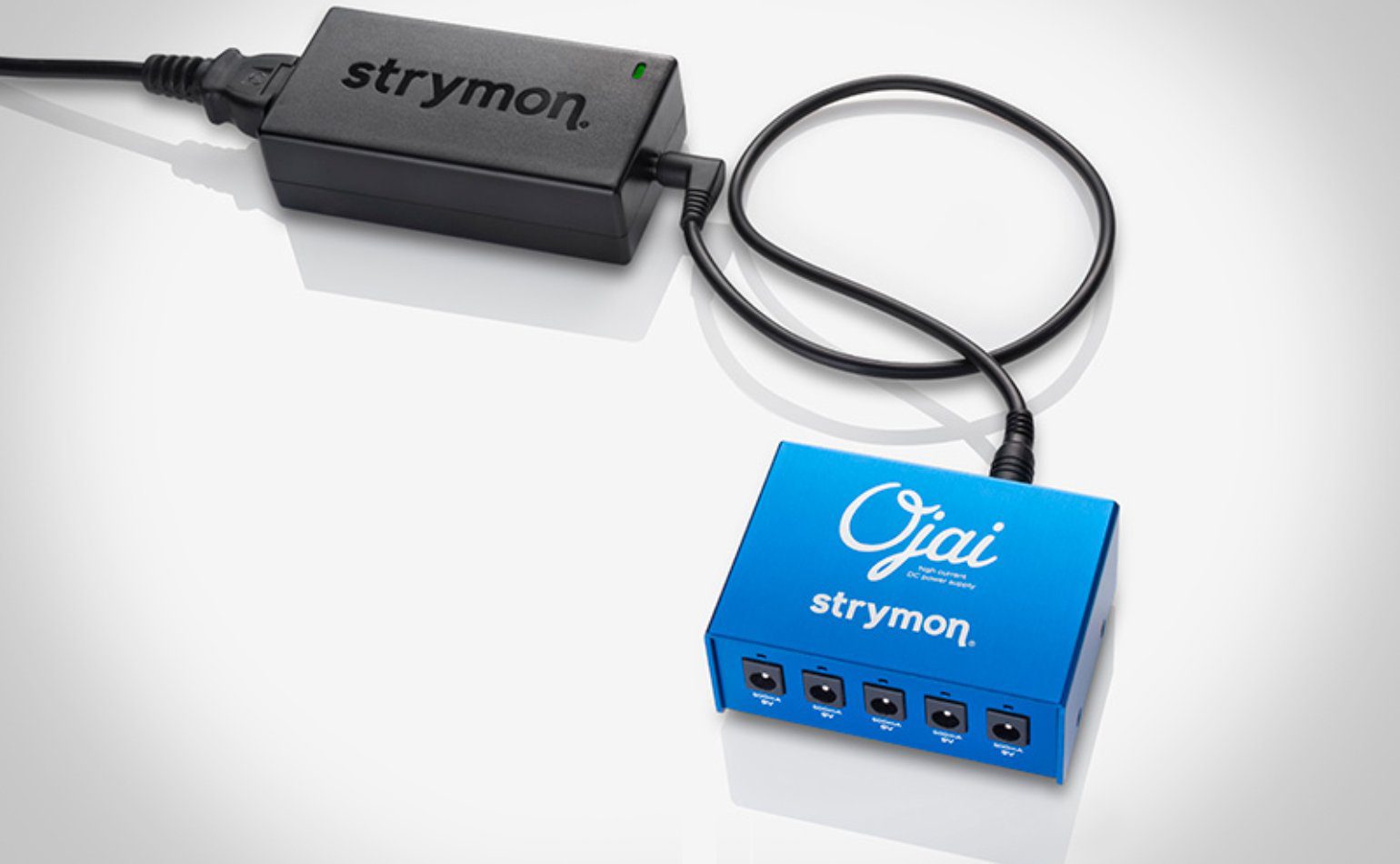 Ojai ist der kleine Bruder mit lediglich fünf 500 Milliampere mit 9 Volt Ausgängen. Ein weiterer 24V Ausgang ist zur Erweiterung mit einem weiteren Ojai gedacht. Im Lieferumfang sind der Poweradapter und fünf Kabel zur Verbindung mit Pedalen.