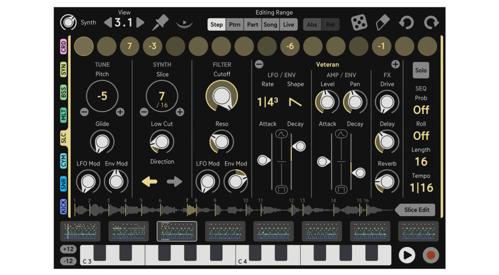 Sugar Bytes Dialekt verfügt über acht Spuren, die mit einer Reihe von unterschiedlichen Sound-Engines bestückt sind – der Hersteller spricht von insgesamt 27 „Synth-Engines“. Neben Synthesizern und Drum-Engines gibt es auch klassische Oszillatoren, Percussion-Sounds und Instrumente wie Klavier, Orgel, Streicher, Flöten oder Vocal-Klänge. Das alles garniert diese Groovebox noch mit einem Sample-Slicer inklusive Aufnahmefunktion – allerdings nur in der Standalone-Version.