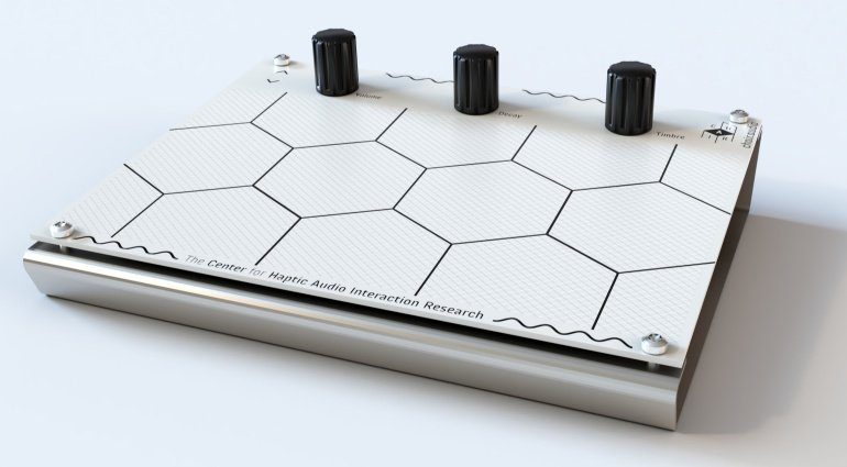 Die noch junge Klangerzeuger Firma Chair Audio präsentiert auf der Superbooth 2018 ein neuartiges Instrument, dass durch Vibrationen Sounds erzeugt. Der digitale Klangerzeuger merkt sogar wo es auf der Einspielfläche angespielt wurde. Die Haptik steht hier im Vordergrund und soll Synthesizer organischer wirken lassen. Die Benutzeroberfläche besitzt eine „klingende“ Eingabeplatte, die zur Sounderzeugung gekratzt, angeschlagen oder gestrichen wird.