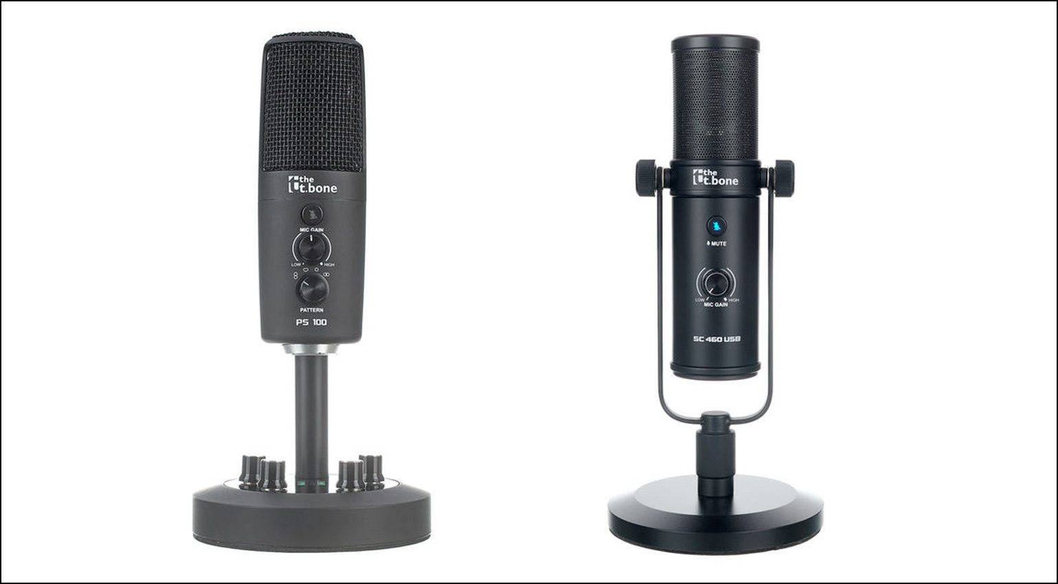 USB-Mikros sind im Augenblick ja sehr gefragt – Streaming und Podcasting dürften neben Home-Recording die wesentlichen Gründe dafür sein. Dass viele im Augenblick im Homeoffice arbeiten oder Zoom-Konferenzen mit den Liebsten machen, spielt bestimmt auch eine Rolle. Es gibt also vielfältige Gründe für eine Anschaffung und wie so oft spielt der Preis dabei eine Rolle. Die Thomann-Eigenmarke the t.bone hat mit PS 100 und SC 460 USB zwei relativ günstige Mikros im Programm.