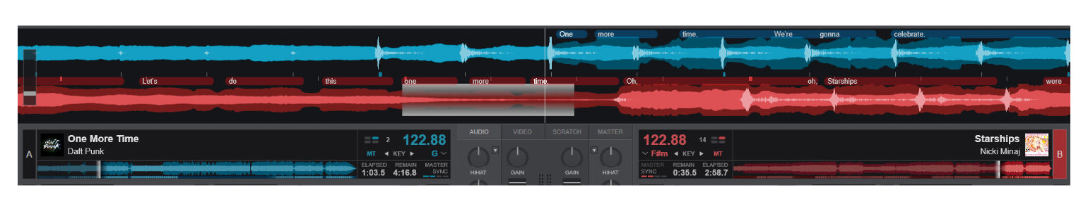 VirtualDJ 2026 kann jetzt die Lyrics aus einem Audiofile eigenständig auslesen und zeigt diese nun als Teil der Wellenform an. Das ist natürlich nicht nur ein cooles Gimmick, sondern hat durchaus auch eine praktische Funktion. Denn das Mixing von Tracks mit Vocals wird dadurch noch übersichtlicher. Du findest schneller den gewünschten Part, um diesen genau im richtigen Moment zu spielen. Letztes Jahr wurde ja der StemSwapSampler eingeführt, im Zusammenspiel mit der neuen „Einsicht“ in das Audiomaterial lässt sich so mit Sicherheit noch kreativer mixen.