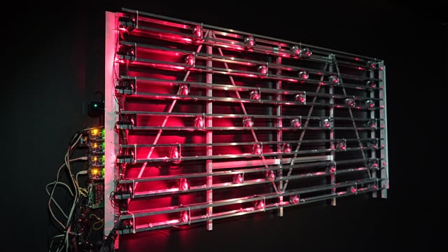 Die Technik dahinter basiert grundlegend auf Lew Termens (aka Leon Theremin) Rhytmicon, das auch die Klänge aus Helligkeitsunterschieden generiert. Sieben horizontale Laser werden auf ihrer Bahn von verschiedenen Gehäuselüftern für Computer (42 Stück) immer wieder unterbrochen, was gleichmäßig passiert und somit am Ende als Rhythmus durchgeht. Der Lichtempfänger sendet die binären Trigger-Signale an vier Arduinos, der jeden Laser anders auswertet und entsprechende Klänge abfährt/erzeugt.