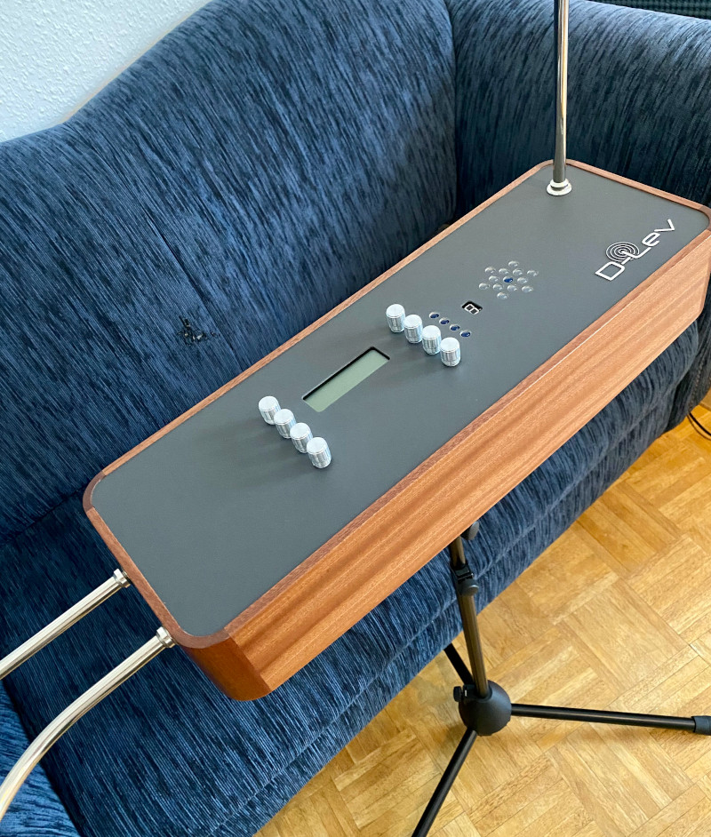 Es hat einige LEDs, die scheinbar die Position und damit die Tonhöhe anzeigt. Das habe ich bisher noch bei keinem anderen Gerät so gesehen und erleichtert möglicherweise eine genaue Intonation ohne viel Glissando. Die (Neunzehnhundert)-Zwanziger waren auch aus dem Schlager heraus eine Zeit, in der auch Menschen viele gezogene Töne auch anboten. Hier klingt eine Melodie sehr gut gesteuert und offensichtlich nie „daneben“, anders als sonst auch auf dem Thereminenfeld.